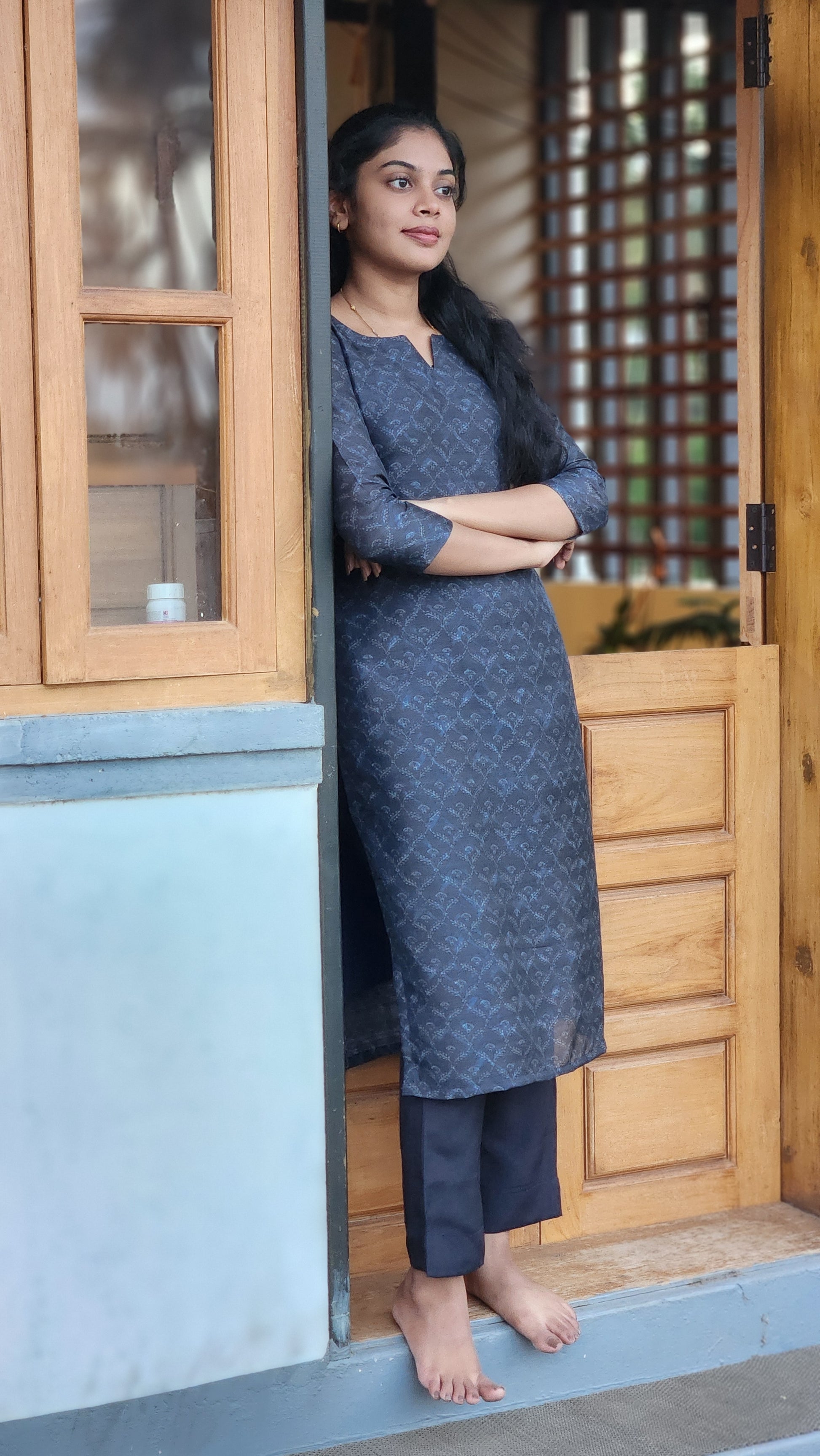 NY 506 Elegant Dupion Ajrakh kurti set with 3/4th sleeves