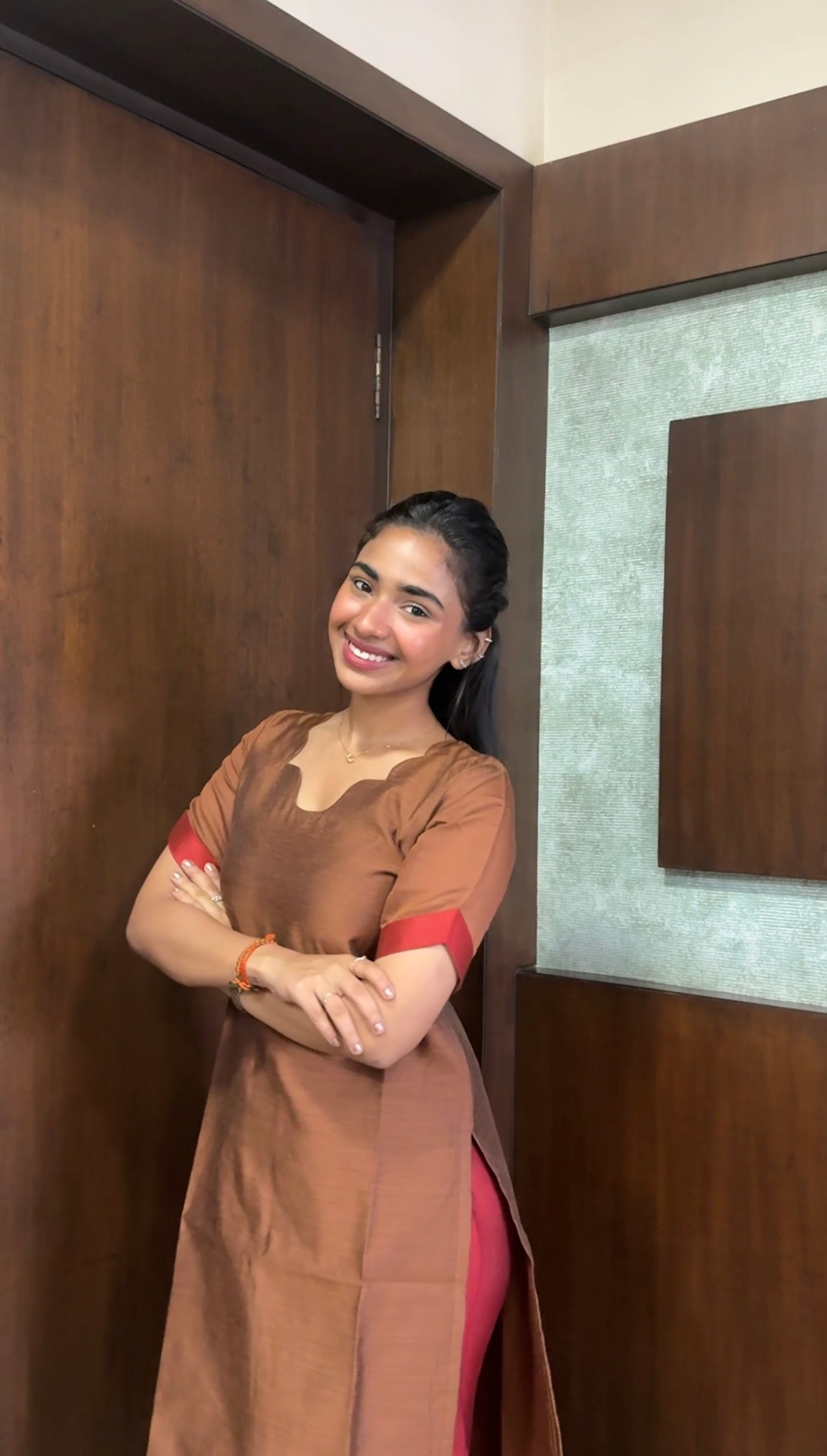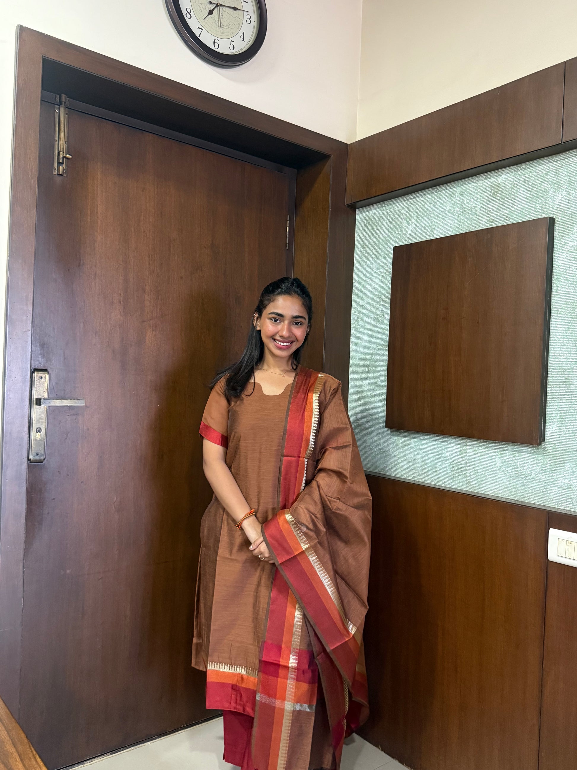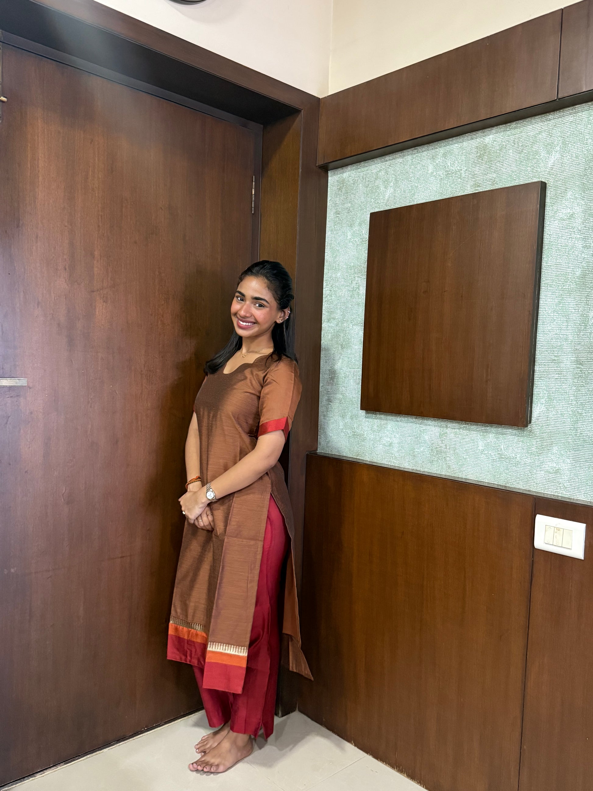 Elegant Pure Maheshwari silk kurti set with elbow sleeves