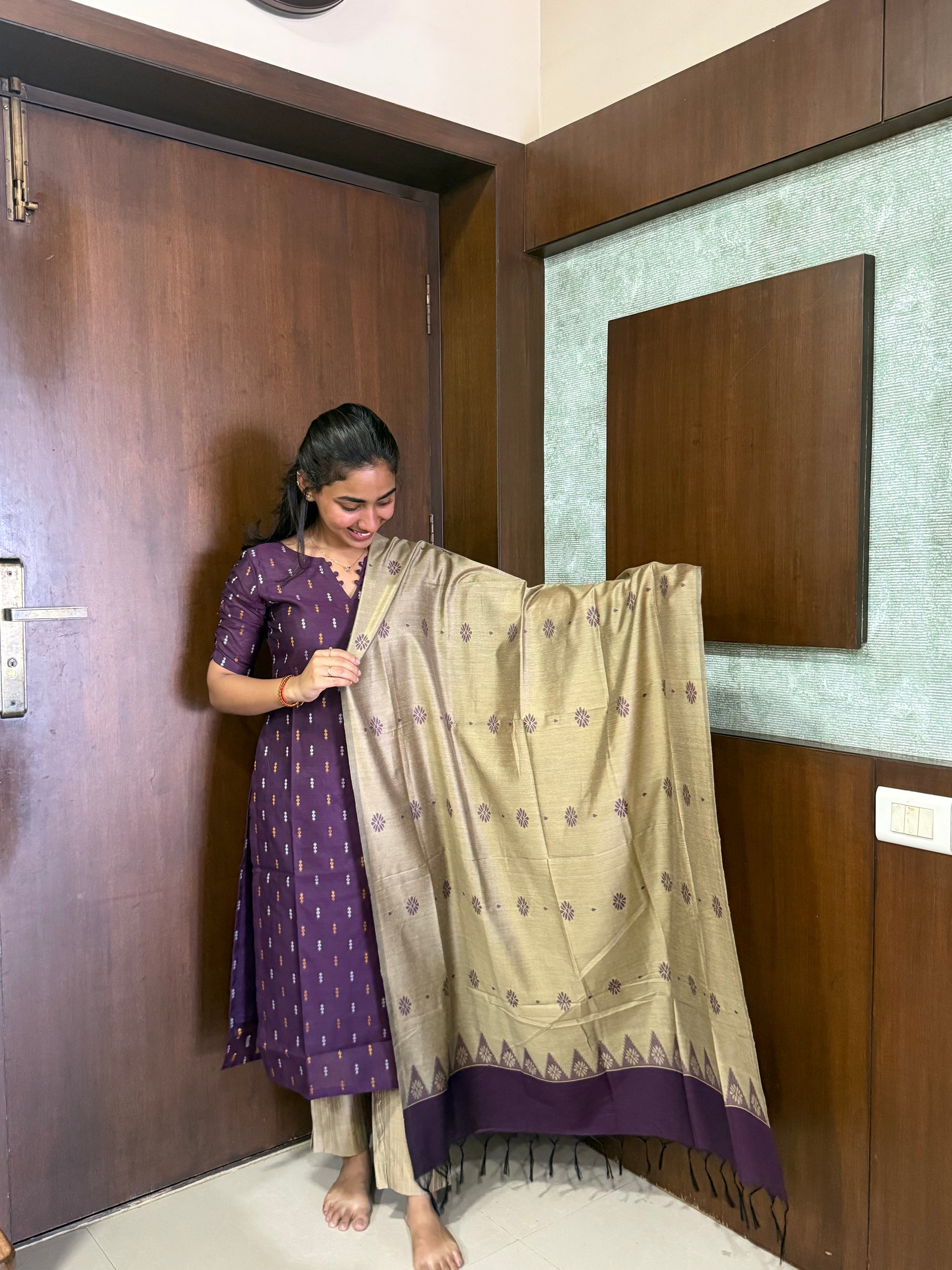 Elegant RawSilk kurti set with duppatta and elbow sleeves