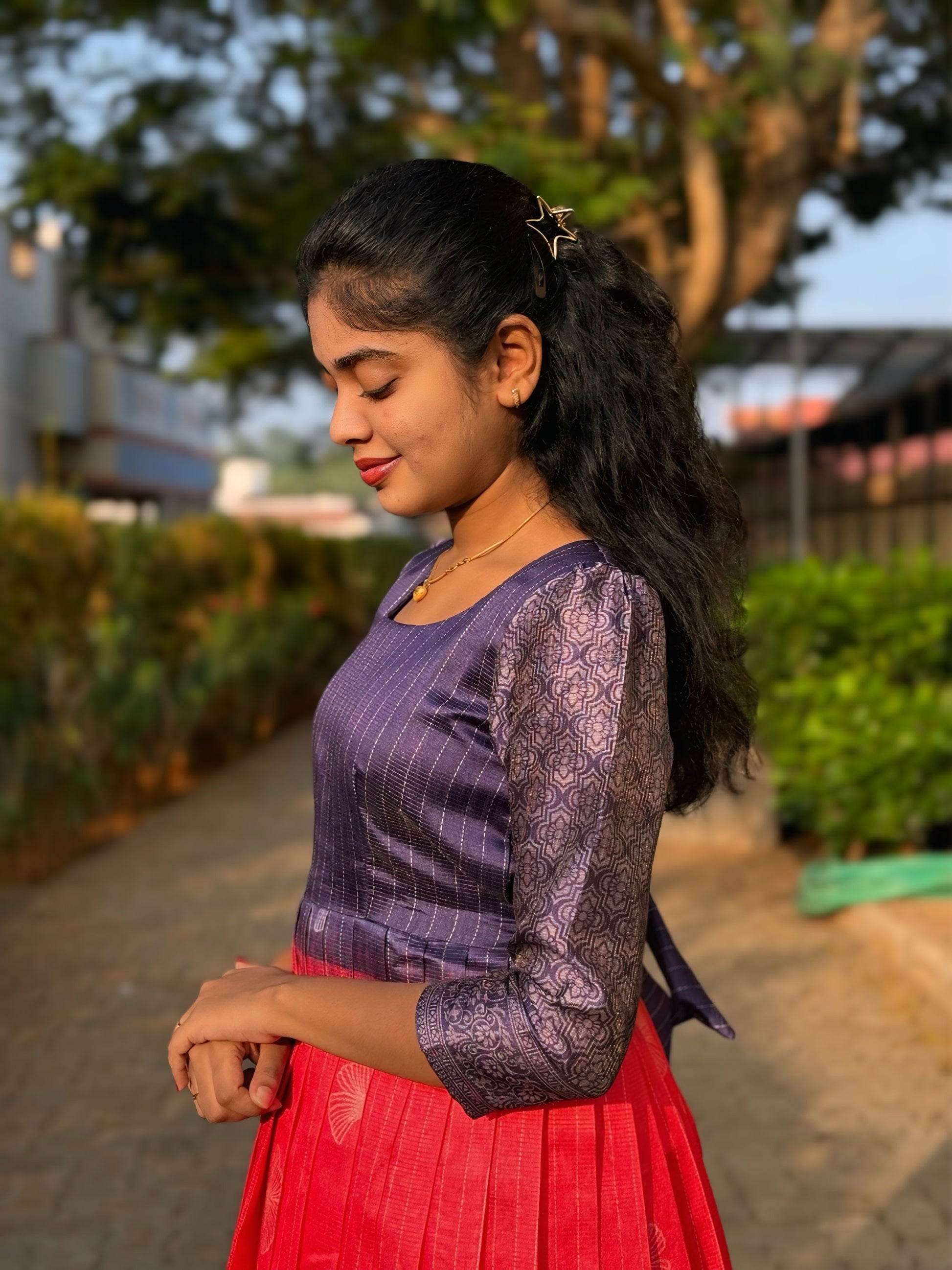 NY 523 Elegant Dola silk maxi with 3/4th puff sleeves