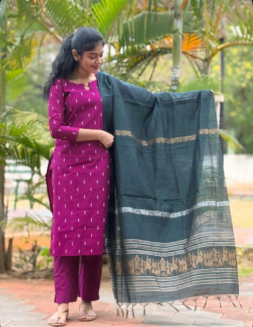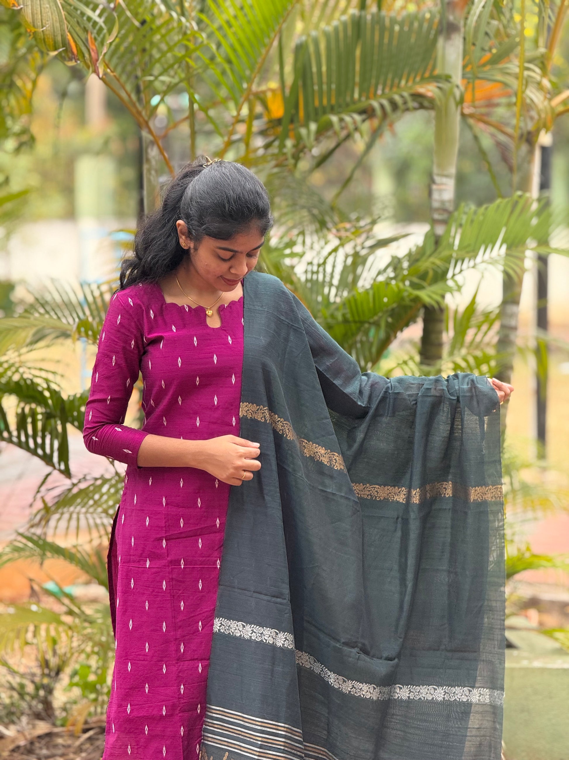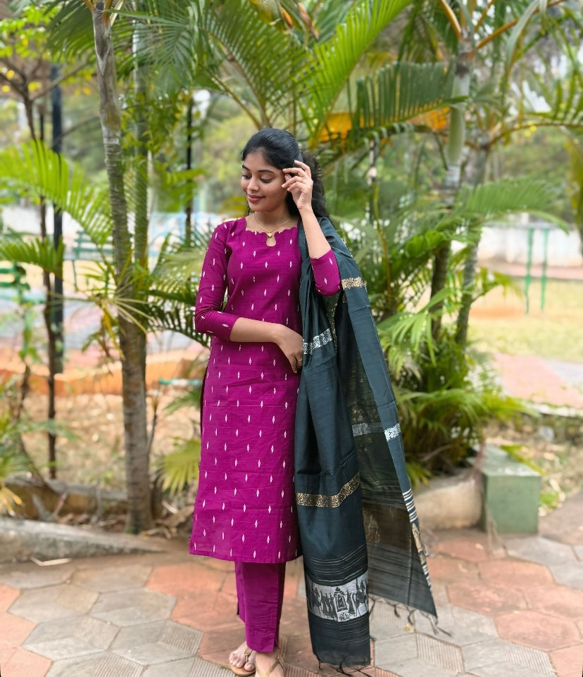 NY 530 Elegant Rawsilk 3/4th sleeves with scallop neck