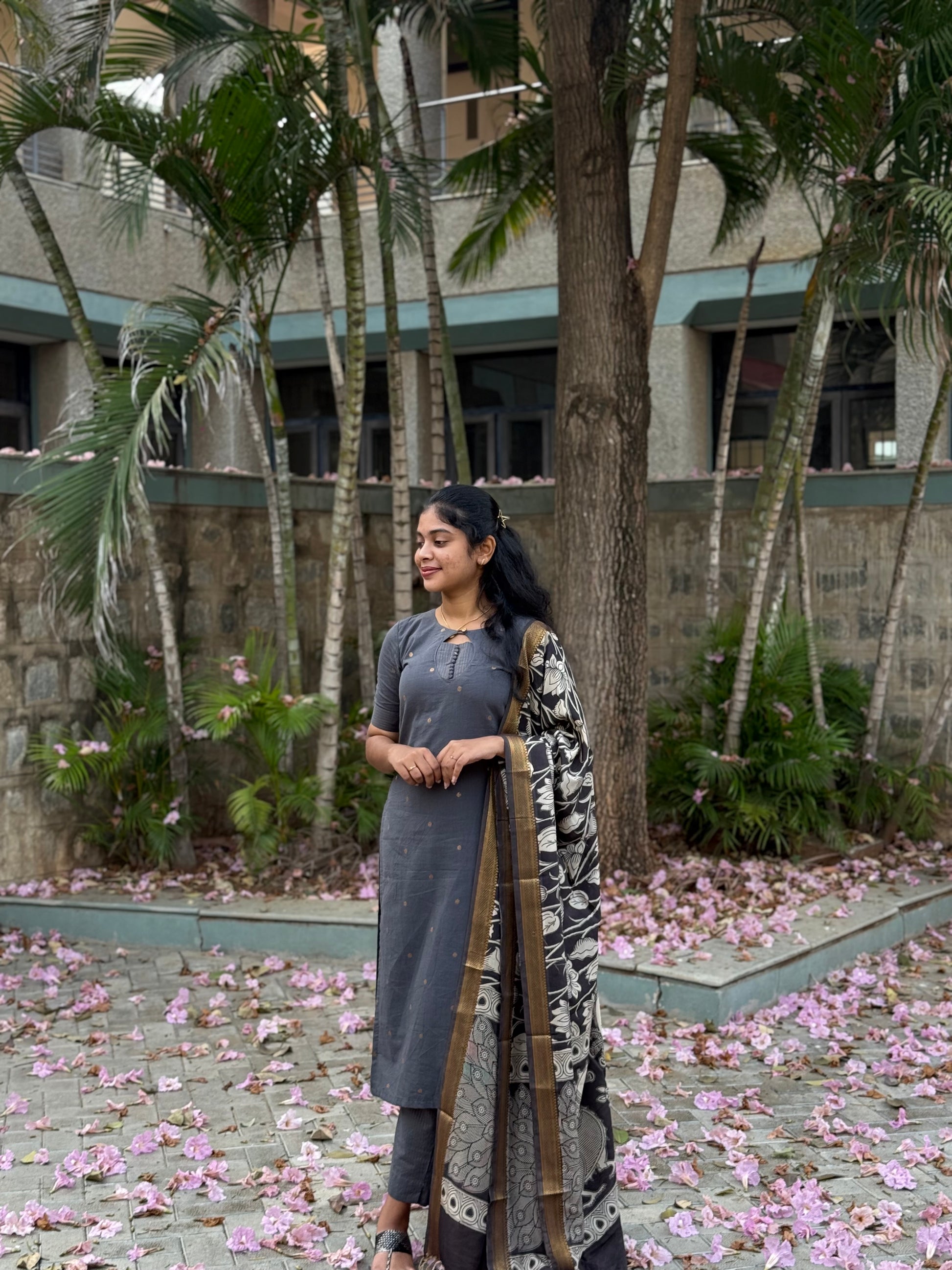 NY 518 Elegant Rawsilk with pure georgette kalamkari duppatta with elbow sleeves