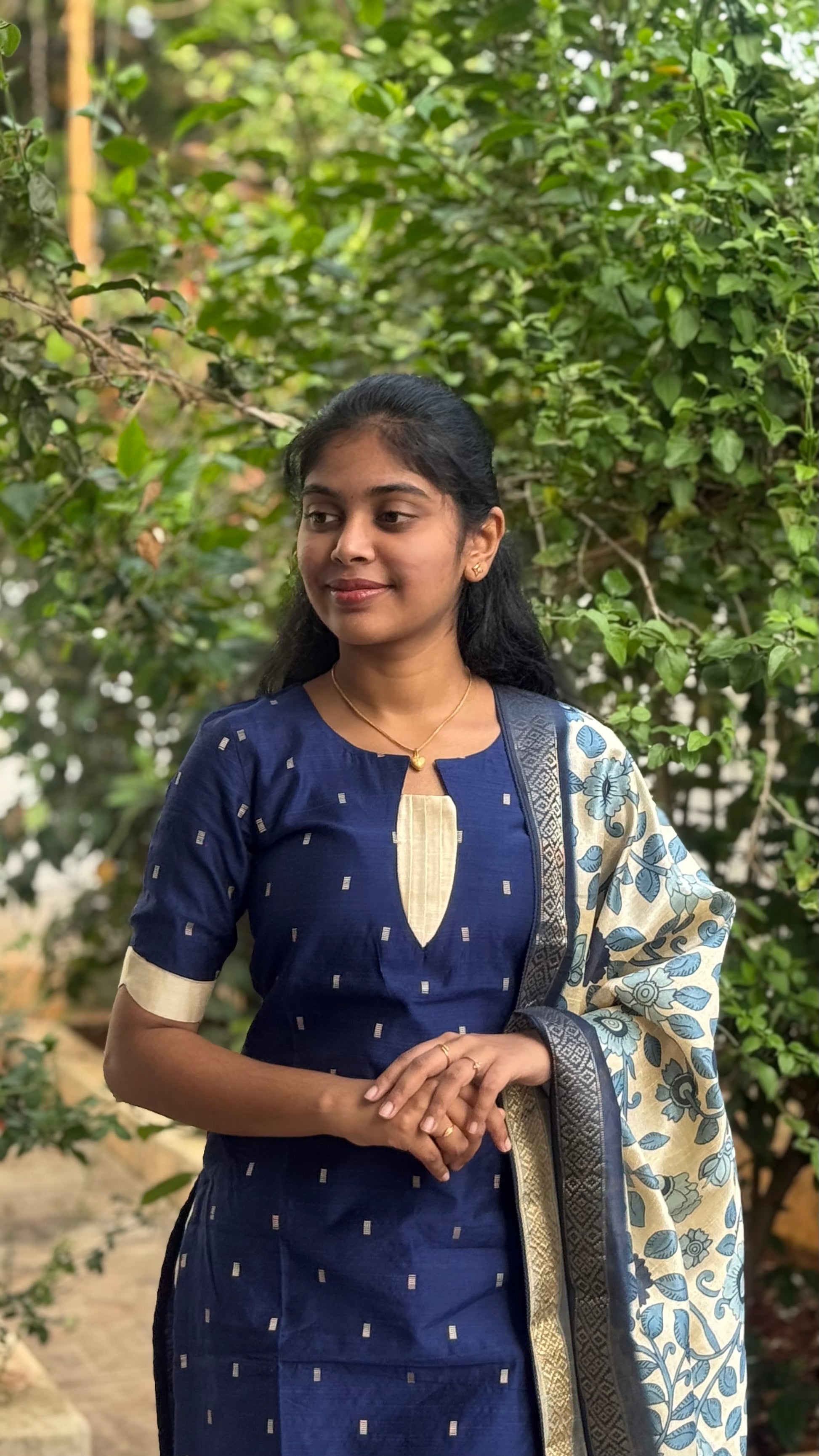 NY 529 Elegant Rawsilk kurti with elbow sleeves with kalamkari silk duppatta
